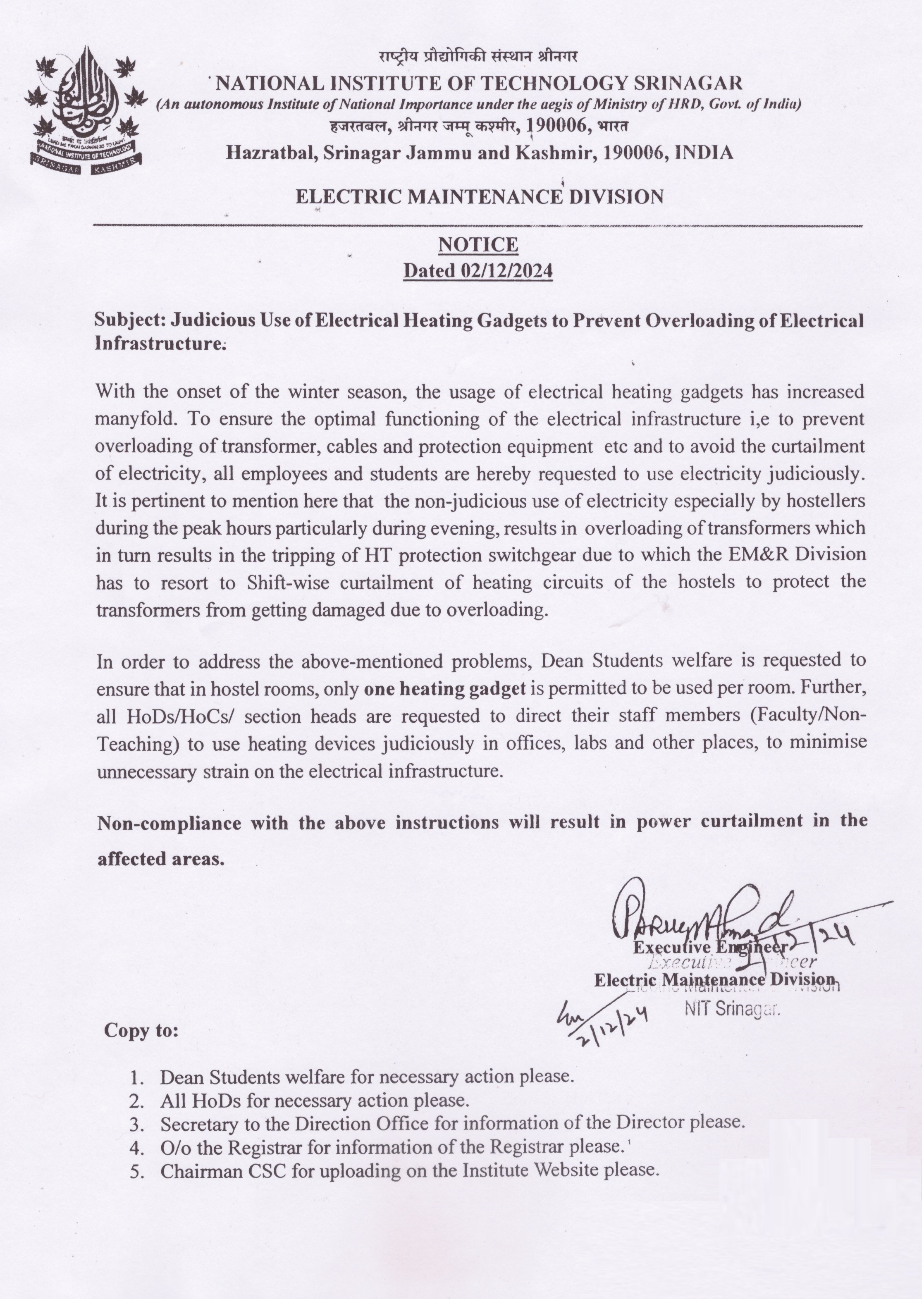 Appointment of HoD Chemical Engineering and HoD Electrical Engineering.